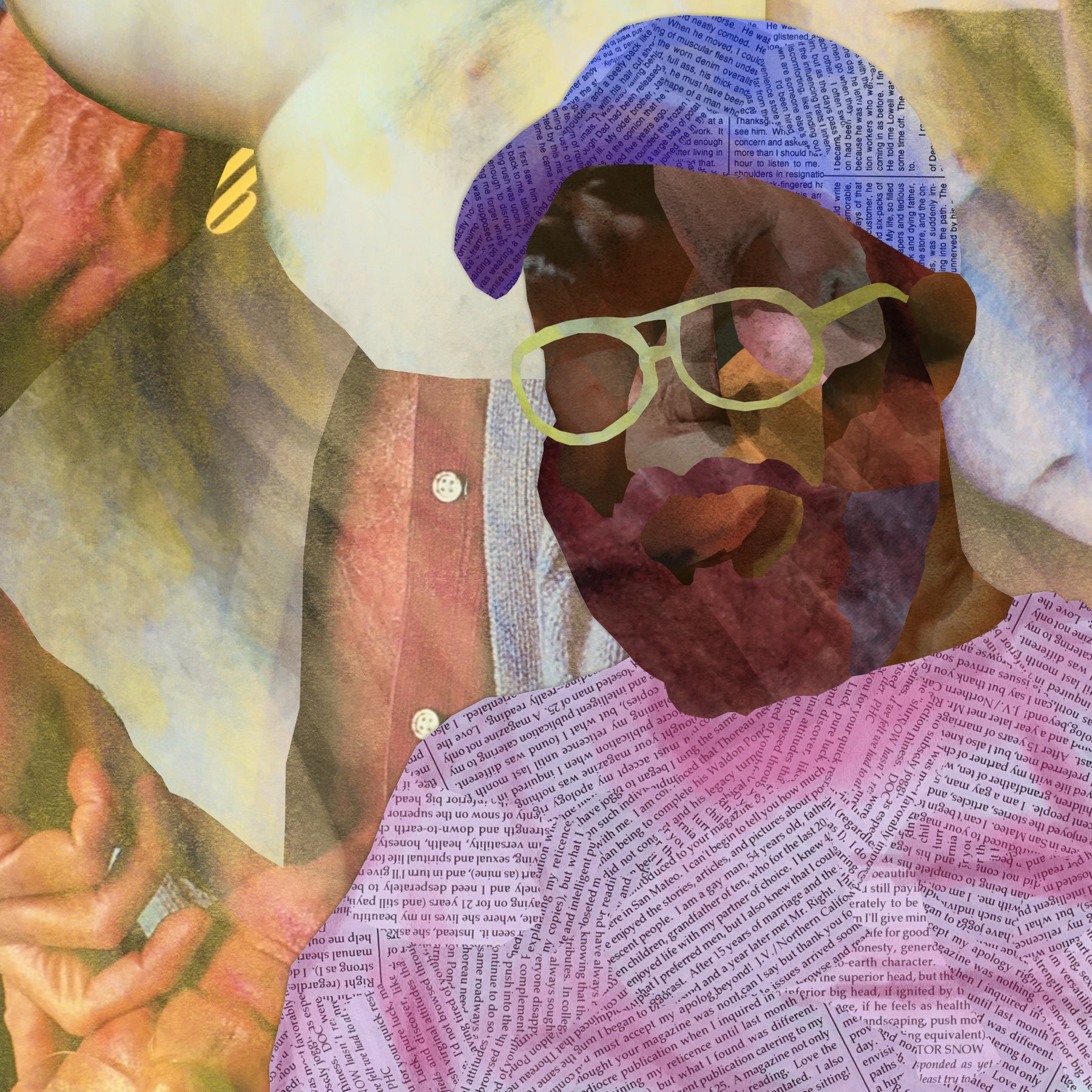 self-portrait, collage with watercolor and acrylic, 2002.